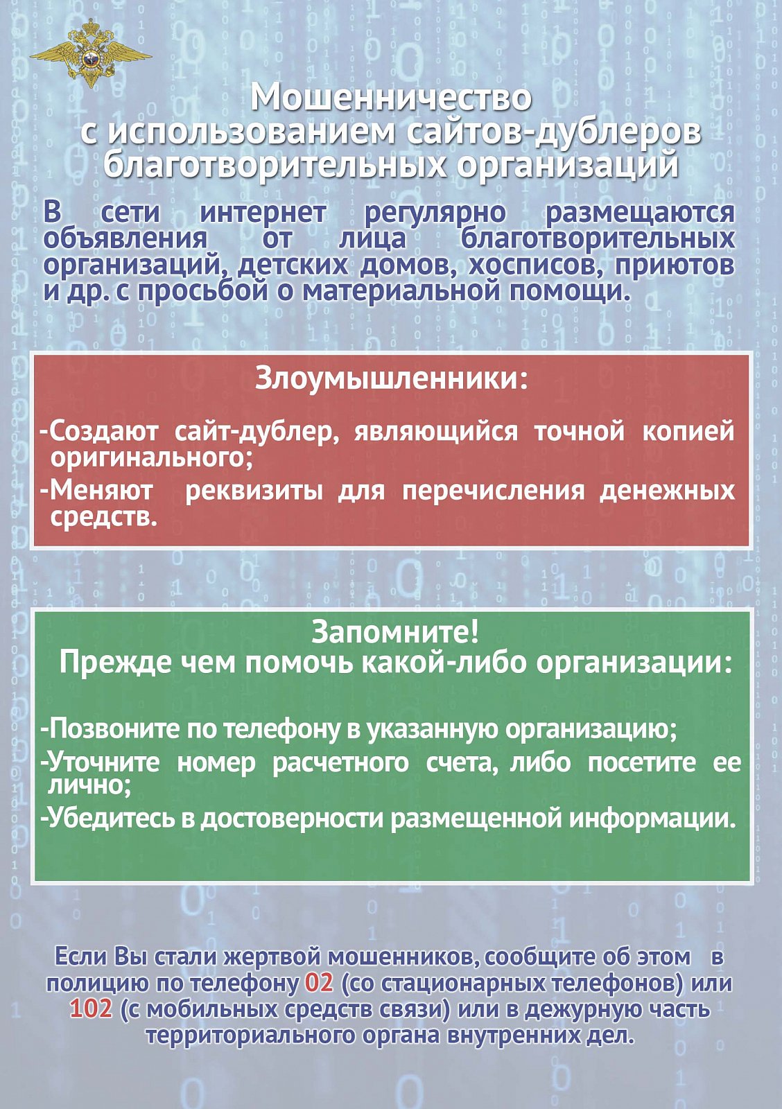 Будьте внимательны к информации ниже и поделитесь ею с близкими. Не дайте себя обмануть.