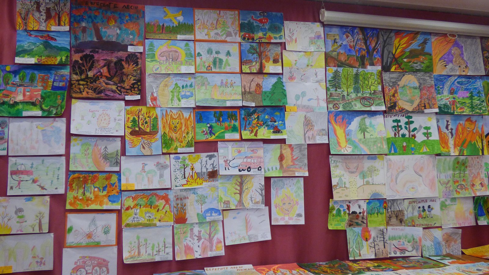 Ребята, принявшие участие в конкурсе, постарались отразить в своих работах предупреждение пожаров, современную пожарную и спасательную технику для борьбы с лесными пожарами, борьбу с лесными пожарами, спасение людей, животных и лесонасаждений, сохранение биологического разнообразия флоры и фауны.
